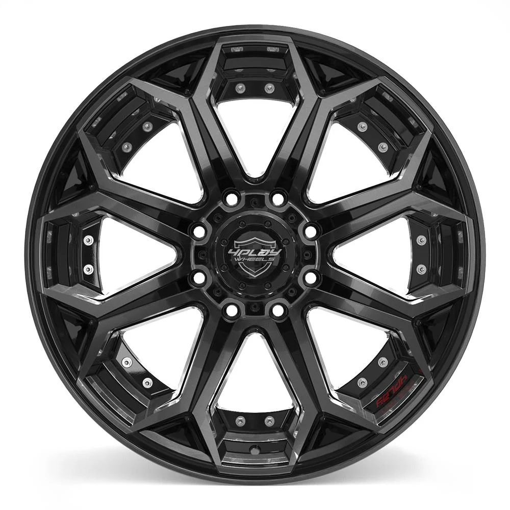 These 4P80 4play gen2 wheels are 22×12 brushed black rims designed to fit the Chevy-GMC and other compatible vehicles. Please check our fitment tab for specific year-make-model applications and will-not-fit exceptions before ordering. All OE Wheels rims are TUV, JWL, VIA, SAE or DOT approved, and are guaranteed to be straight and true (refer to our warranty tab for more information). Like all quality 4play gen2 wheels, the 4P80 should be washed with soap and water only (no harsh chemicals), and dried with a clean microfiber cloth.