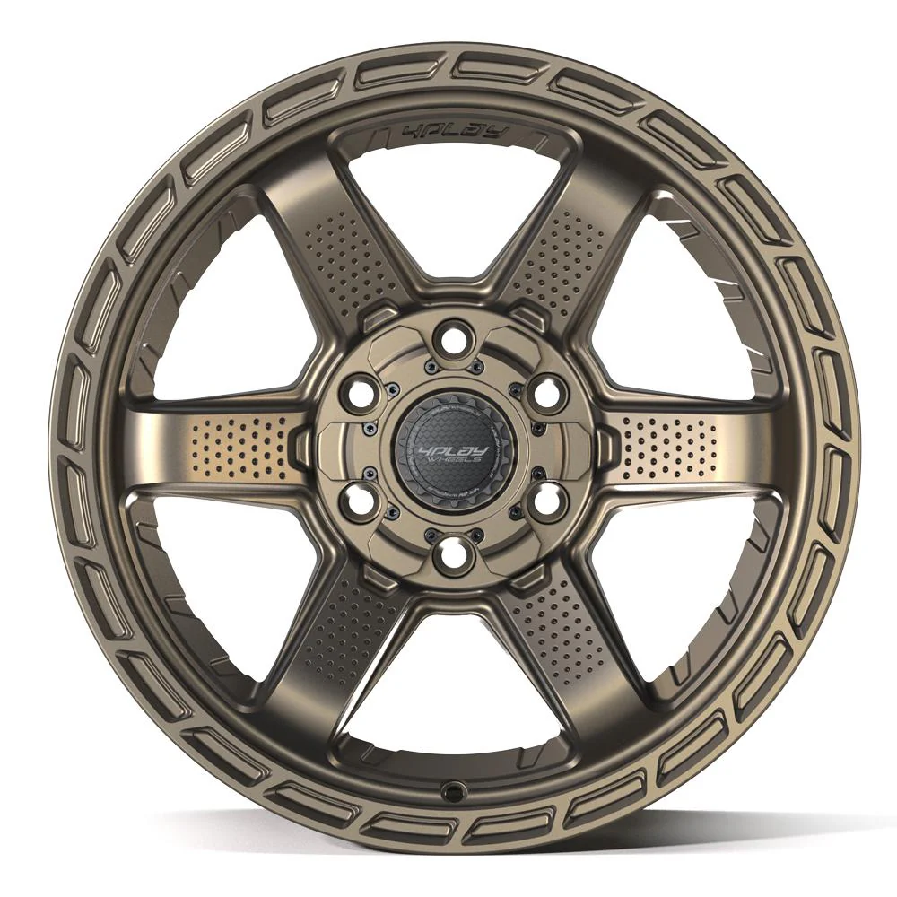 These 4PS6 4play sport series 2.0 wheels are 18×9 bronze rims designed to fit the GM-Ford-Lincoln-Nissan-Toyota and other compatible vehicles. Please check our fitment tab for specific year-make-model applications and will-not-fit exceptions before ordering.All OE Wheels rims are TUV, JWL, VIA, SAE or DOT approved, and are guaranteed to be straight and true (refer to our warranty tab for more information). Like all quality 4play sport series 2.0 wheels, the 4PS6 should be washed with soap and water only (no harsh chemicals), and dried with a clean microfiber cloth.