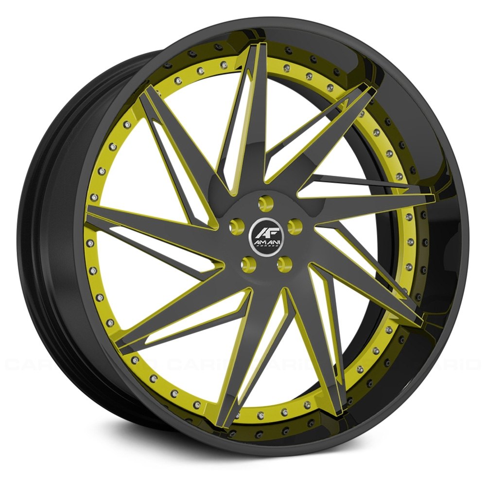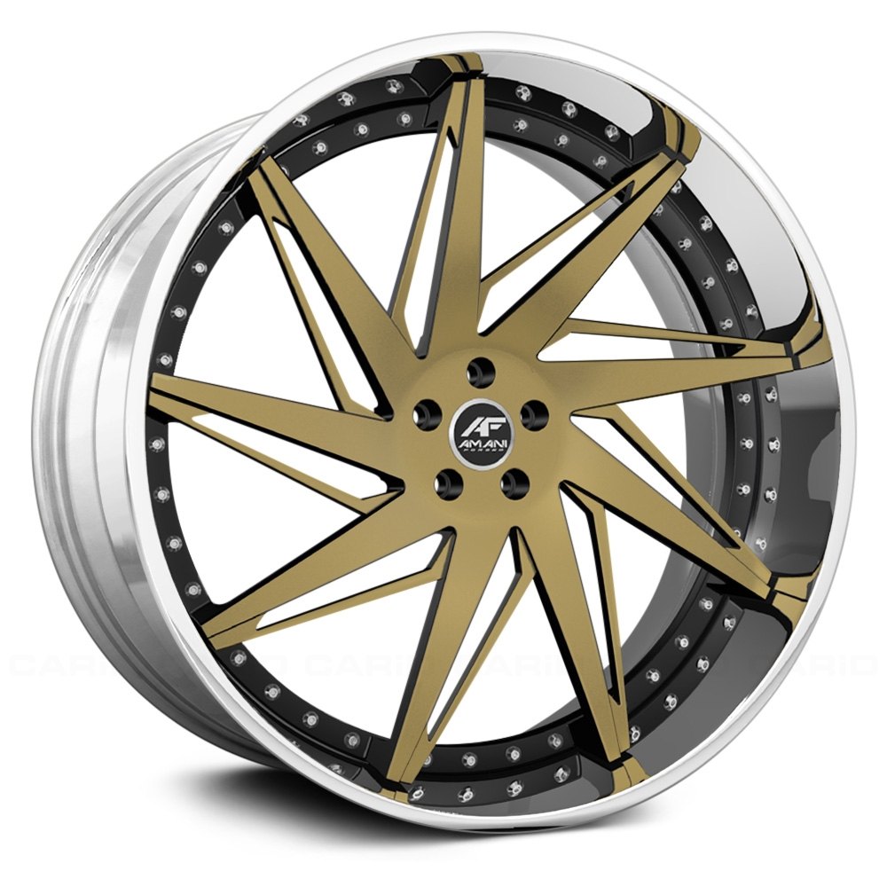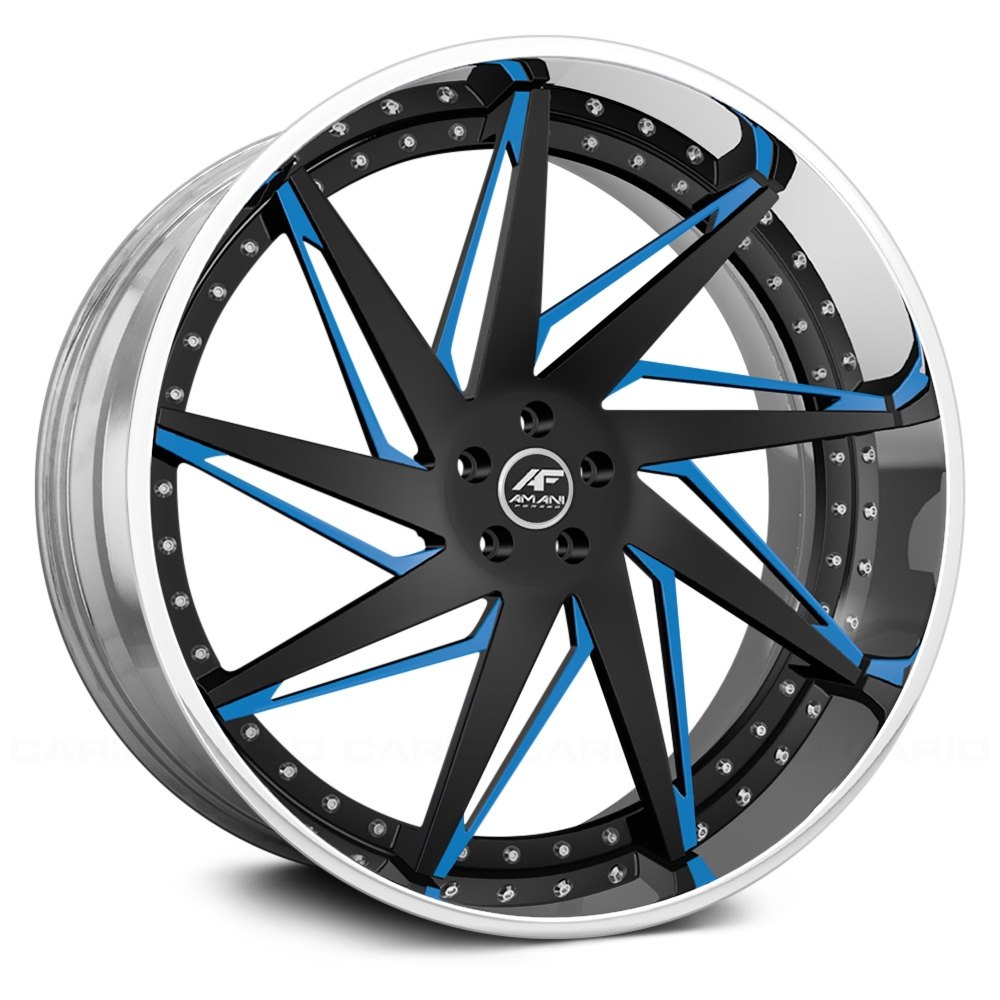 AMAZIN 2PC Custom Finish with Chrome Lip Wheels by AMANI FORGED®. The Forged series is Amani Forged’s standard line of wheels with the hottest and most popular designs that the company has to offer. The Forged wheels combine simple yet attractive designs with high performance and low weight, which is common for all wheels manufactured using a forging process.