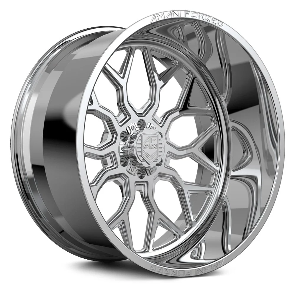 MIRA Polished Wheels by AMANI FORGED®. The Forged series is Amani Forged’s standard line of wheels with the hottest and most popular designs that the company has to offer. The Forged wheels combine simple yet attractive designs with high performance and low weight, which is common for all wheels manufactured using a forging process.