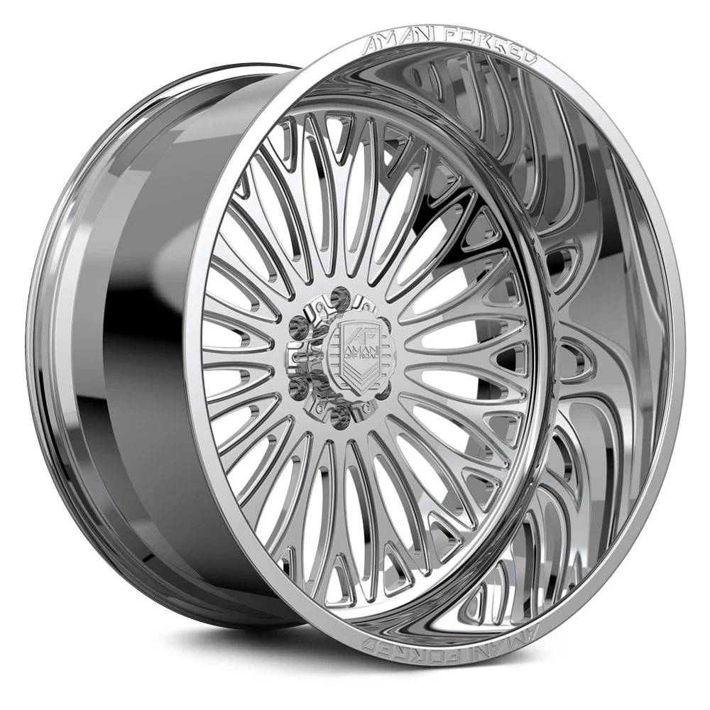 NAPOLIANO Polished Wheels by AMANI FORGED®. The Forged series is Amani Forged’s standard line of wheels with the hottest and most popular designs that the company has to offer. The Forged wheels combine simple yet attractive designs with high performance and low weight, which is common for all wheels manufactured using a forging process.