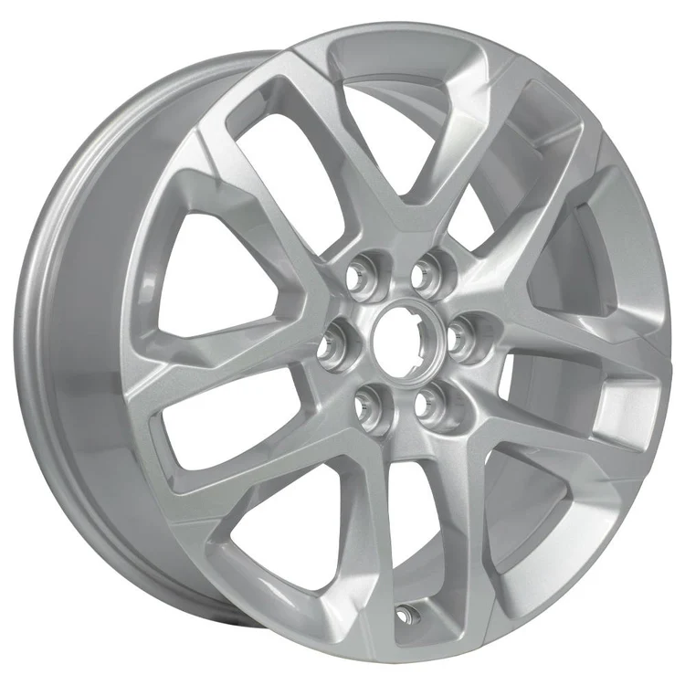 These CV52 factory original OEM wheels are 18×7.5 gloss silver rims designed to fit the Chevrolet Traverse and other compatible vehicles. Please check our fitment tab for specific year-make-model applications and will-not fit exceptions before ordering.