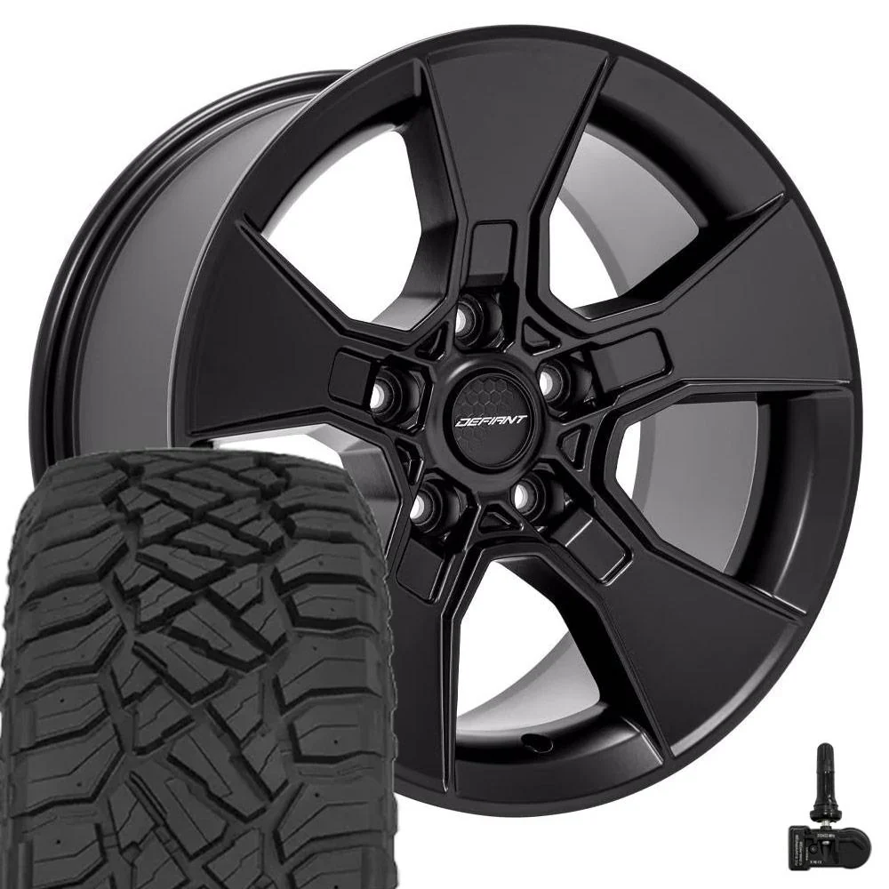 DEFIANT DF02 17×8.5 5×127 Satin Black Wheels 33×12.50-17 Sailun TerraMax RT Tires TPMS SET