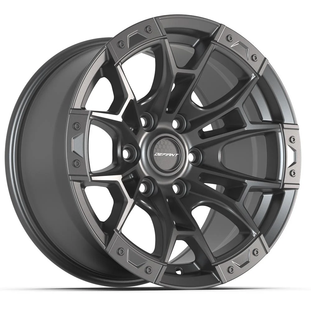 These DF04 Defiant wheels are 17×9 dark satin charcoal rims designed to fit the Ford F-150 and other compatible vehicles. Please check our fitment tab for specific year-make-model applications and will-not-fit exceptions before ordering.