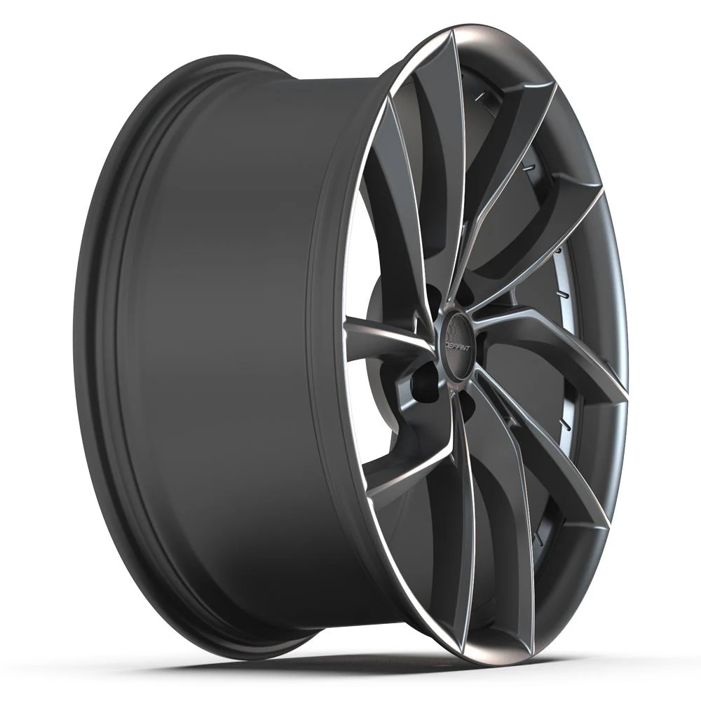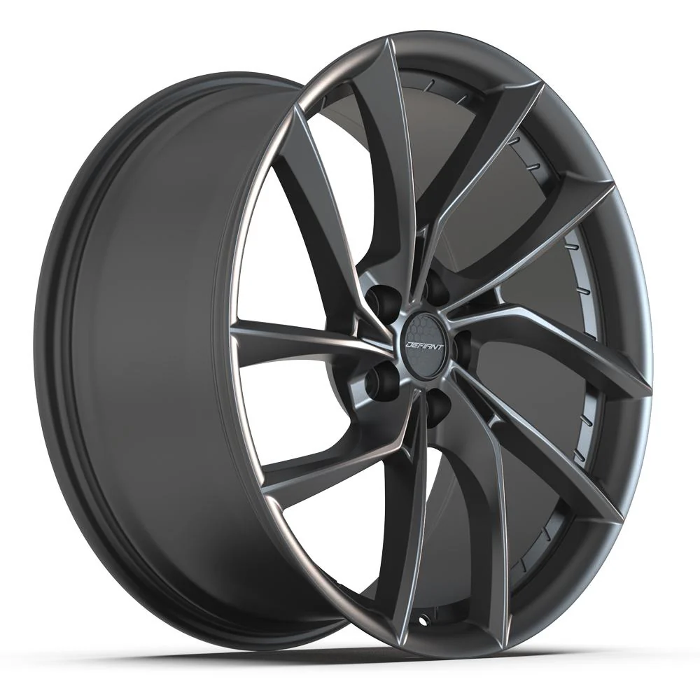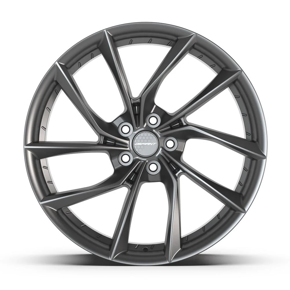 These DF06 Defiant wheels are 20×9 dark satin charcoal rims designed to fit the Tesla Model X / Model S and other compatible vehicles. Please check our fitment tab for specific year-make-model applications and will-not-fit exceptions before ordering.