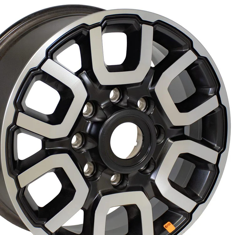 These DG76 factory original OEM wheels are 18×8 gloss gunmetal with polished face rims designed to fit the RAM 2500/3500 and other compatible vehicles. Please check our fitment tab for specific year-make-model applications and will-not fit exceptions before ordering.
