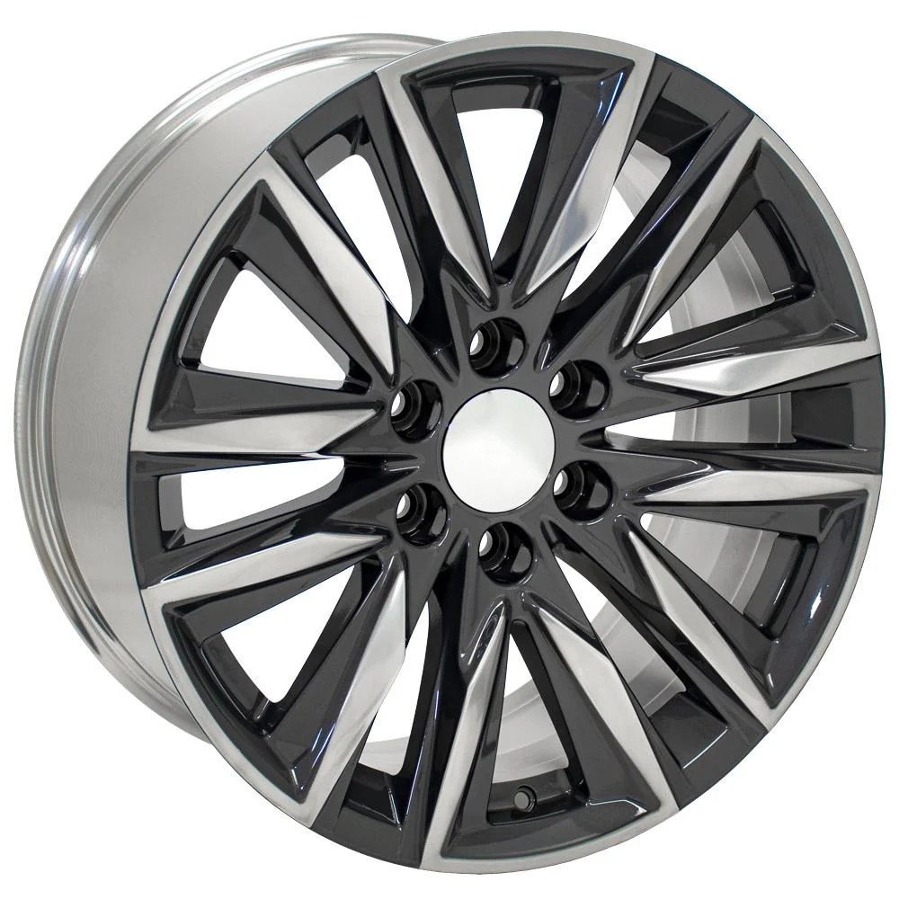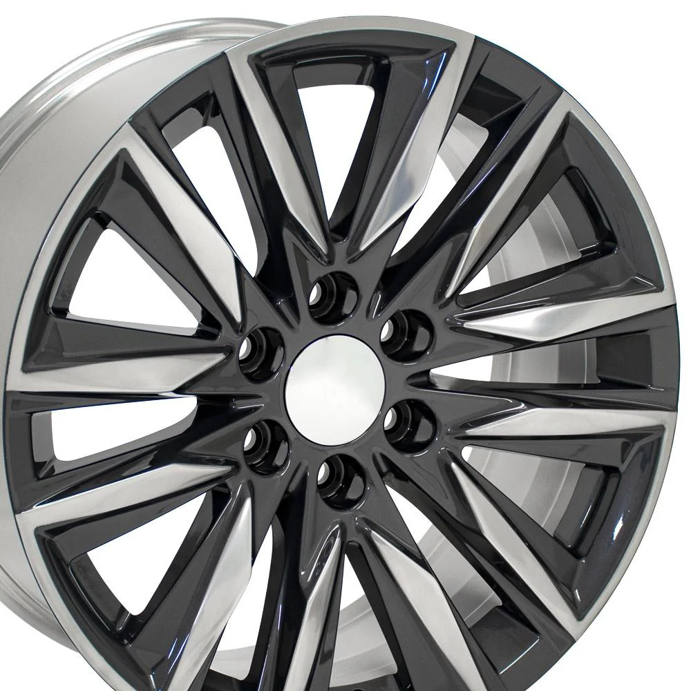 These CA91 Replica Wheels are 20×9 Polished Gunmetal rims designed to fit late model GC Sierra, GMC Yukon, Chevy Silverado, Chevy Tahoe including 2019 models. This wheel was originally featured on the 2022 Cadillac Escalade as an upgraded wheel option. Please check our fitment tab for specific year-make-model applications and will-not-fit exceptions before ordering.