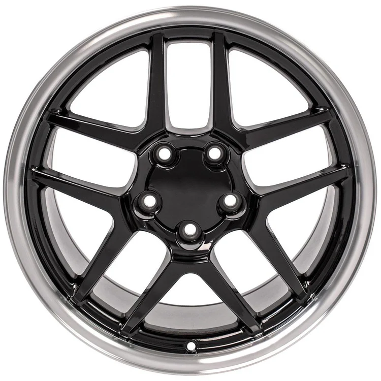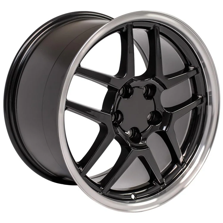 UPC 9509465 17 Inch Rims Fit Corvette Camaro C5 Z06 Style CV04 Black Wheels and Toyo Extensa .This is a non-staggered set of four rims and four tires will arrive to you mounted and balanced. The Toyo Extensa HP II 275/45-17 is a High Performance All Season Tire designed as a value driven option providing a perfect balance between outstanding performance, quality and styling. The unidirectional tread design provides a perfect blend of all season traction. Full depth wave sipes provide a smooth and quiet ride, minimizes irregular wear and improves snow traction. Single cut and double cut tapers optimize block stiffness enhancing braking performance. Finally, the silica coumpound provides a better wet perfomance while maintaining the tread life performance of your new Toyo Extensa HP II Tires. 17×9.5 Rims Fit C4 Corvette and F Body Camaro C5 Z06 Style CV04 . These are Gloss Black Replica Wheels