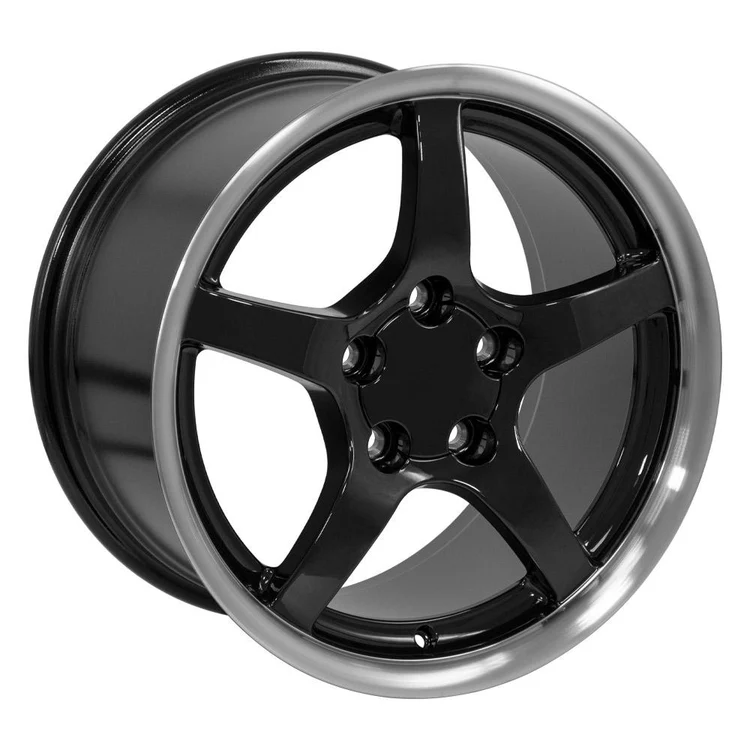 UPC 9509478 17 Inch Rims Fit Corvette Camaro C5 CV05 Style Black Wheels and Toyo Extensa .This is a non-staggered set of four rims and four tires will arrive to you mounted and balanced. The Toyo Extensa HP II 275/45-17 is a High Performance All Season Tire designed as a value driven option providing a perfect balance between outstanding performance, quality and styling. The unidirectional tread design provides a perfect blend of all season traction. Full depth wave sipes provide a smooth and quiet ride, minimizes irregular wear and improves snow traction. Single cut and double cut tapers optimize block stiffness enhancing braking performance. Finally, the silica coumpound provides a better wet perfomance while maintaining the tread life performance of your new Toyo Extensa HP II Tires. 17×9.5 Rims Fit C4 Corvette and F Body Camaro C5 Style CV05. These are Gloss Black Replica Wheels